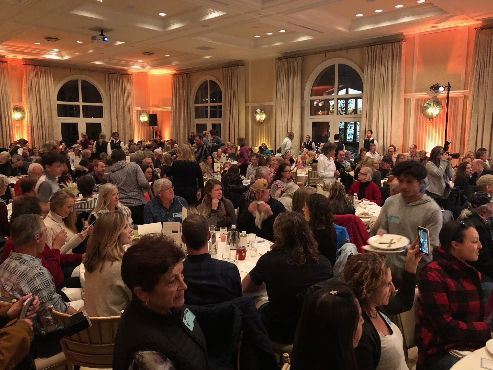 At the Farm Collaborative's 11th annual Farm-to-Table Free Community Meal, held November 20 at the Hotel Jerome, some 1,500 locals enjoyed a delectable meal over the course of three booked-out seatings. In addition to the attendees, an army of 236 volunteers, plus hotel staff, helped prepare and serve food at the event. The meal included fall harvest soup, whole-grain sour dough bread, meatloaf made with beef from Mountain Primal Meat Co., sunchoke mashed potatoes, braised greens, and squash pudding.